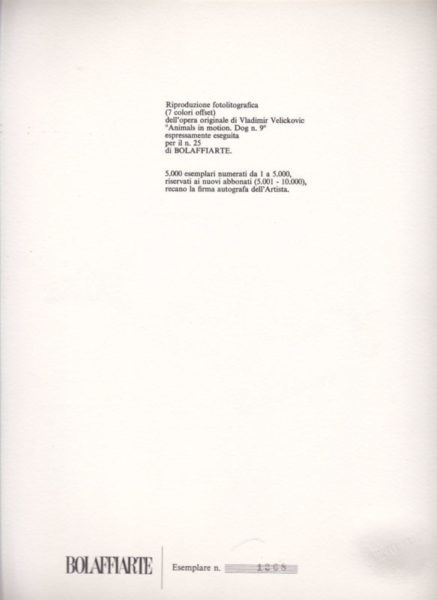 - Firmato ‘Velickovic’ in basso a destra. Numerato sul retro